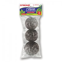 Губки (мочалки) для посуды металлические ЛАЙМА, комплект 3 шт., спиральные по 20