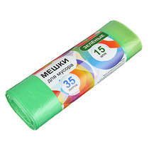 Мешки для мусора с завязками 35л, 15шт, 10 микрон, зелёные