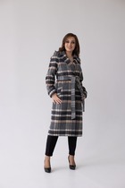Пальто женское демисезонное 24102 (клетка серый+беж)