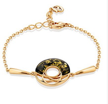 браслет из золоченного серебра и янтаря вишнёвого цвета