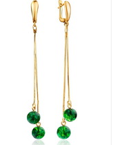 Яркие серьги с янтарём изумрудного цвета и марказитами