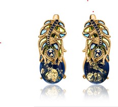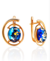Изящные серьги в необычном дизайне из золочённого серебра и натурального янтаря