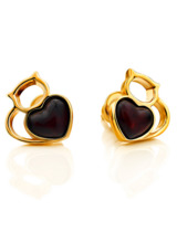 Чудесные серьги-гвоздики из вишнёвого янтаря