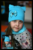 Шапка-кошка бирюзовая с бантом Луи