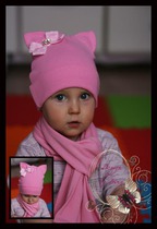 Шапка-кошка розовая с бантом в горох