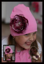 Розовая шапочка с декоративным пиончиком