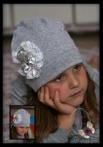 Серая шапочка с композицией из атласных розочек