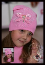Розовая шапочка с жемчугом
