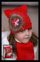 Шапка-кошка красная с бантом
