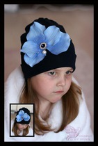 Темно-синяя шапочка с голубой орхидеей