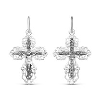 Крест религиозный из серебра родированный - Спаси и сохрани 3,5 см 925 пробы К3-