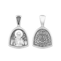 Подвеска религиозная из чернёного серебра - Святой Николай Чудотворец 925 пробы