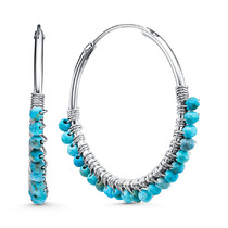Серьги-продёвки из серебра с бирюзовым хаулитом родированные 925 пробы 15864HTRH