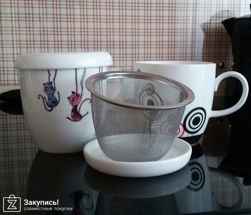 Заказала кружки с ситечком Паркур и Калипсо на подарки. Сама очень люблю такие кружки - одно удовольствие в них чай заваривать. Ситечки-шарики считаю тесными для заварки, в них листикам негде развернуться. А тут сито почти во всю кружку размером. Один косячок😀 - оно настолько широкое, что если его засунуть в икейскую кружку, то оно примерно на сантиметр торчит, не влазит. Но в родной кружке, конечно, идеально.