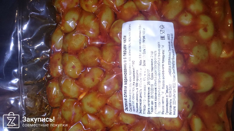 Оливки, как и по описанию с чили), оказались достаточно острыми. Когда достаешь из пакета, получаются обмазаны паприкой (вот как на фото) + встречаются семечки чили. В целом очень даже неплохо.