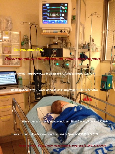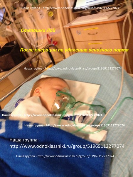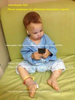 Добрый день! Сегодня 01.07.2014 года у нас, как и было запланировано раннее, прошла операция по удалению венозного порта. Операция, Слава богу! прошла успешно! Длилась около 30 минут. Степашка у нас как всегда держался молодцом! Конечно, немного подустал, встали рано + наркоз. Поэтому после того как нас выписали с госпитализации, придя домой уложили его спать, набираться сил потраченных за такой для него нелегкий день! Следующая проверка у нас назначена на 29.07.2014 года. Надеемся и верим, что все будет хорошо! Спасибо Всем огромное за помощь и поддержку!