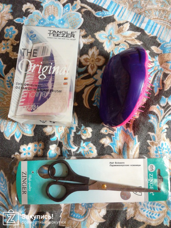 Получила в этой закупке расческу Tangle Teezer и ножницы парикмахерские, расческой вполне довольна,расчесывает волосы хорошо,не путает,мокрые еще не пробовала,ножницами тоже еще ничего не стригла,но в принципе все устраивает.Рабрта организатора на пять баллов.