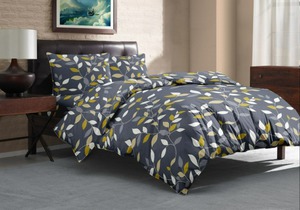 ЛГ-КПБ-листики на сером КПБ Поплин листики на сером