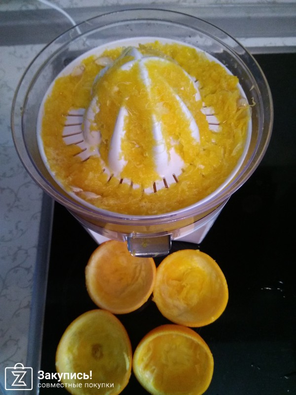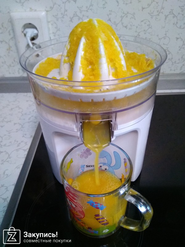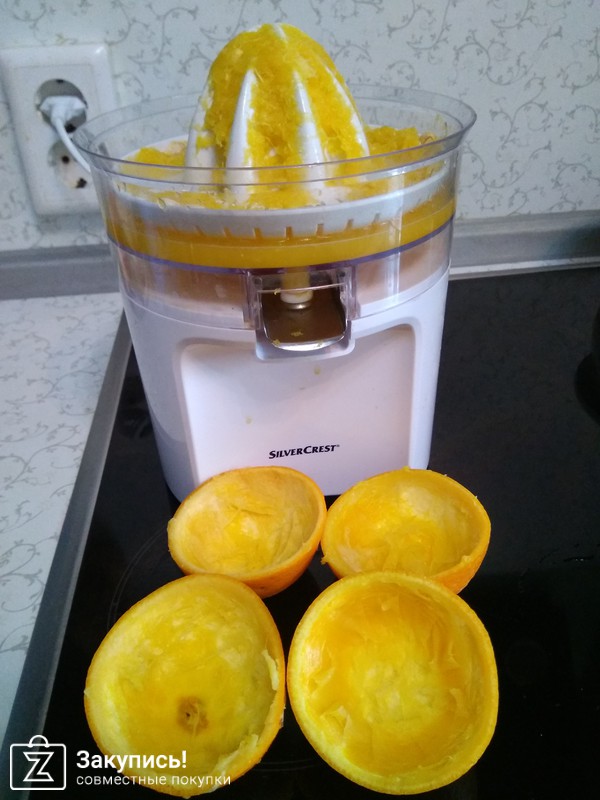 Заказывала в Лидл соковыжималку для цитрусовых. Купила в метро апельсины специально для сока. Так вот для стакана, как на фото, хватает двух больших апельсинов. Дочка(7лет) теперь просит сок каждый день и делает его самостоятельно. По стоимости с доставкой обошлась в 1600р.