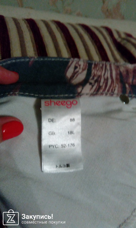 На фото этикетки от джинсов и юбки. Теперь я знаю, что:1. Я поправилась на размер. 2. Эти вещи мне как раз.
