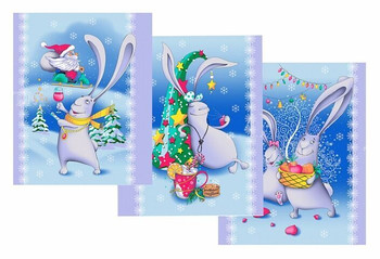 К-т полотенец "Зимние каникулы" 50*60 см. - 3 шт. рогожка хлопок 100%