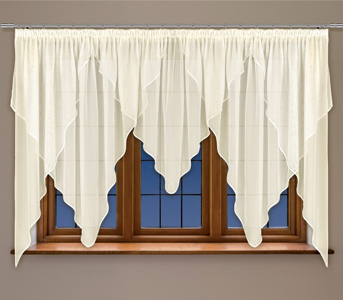 Занавеска из мягкой вуали средней прозрачности. Украшена атласной бейкой. Все детали пришиты на одну шторную ленту. Максимальная высота - 170 см. 100% полиэстер. Светонепроницаемость -10-12%. Производство FIRANKA.