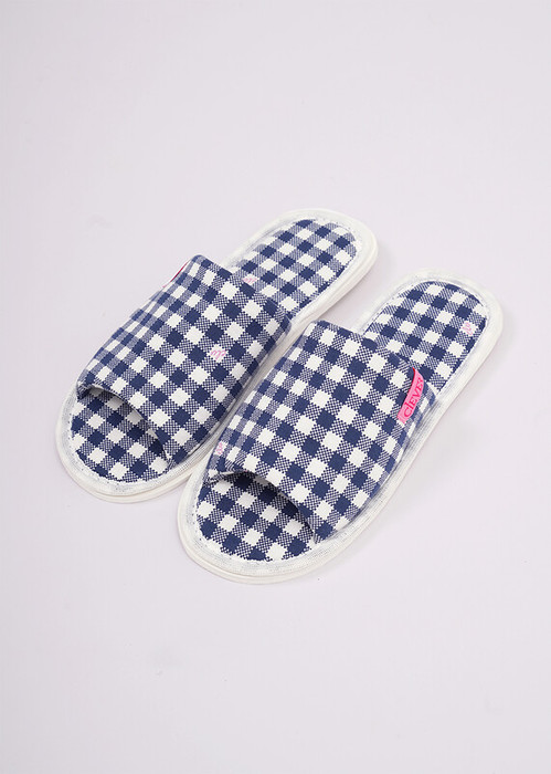 Домашние тапочки с открытым носом из хлопкового трикотажного полотна, сверху нашивка. Толстая подошва.