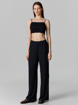 Брюки прямые свободные. Пояс цельнокроеный с эластичной тесьмой внутри. С внешней стороны пояса пробиты петли и втянут шнур (8KXW-1 8мм.) с узлом на концах. В боковых швах обработаны карманы. Подкладка кармана из основного полотна. Низ брюк обработан швом впобгибку с эластичной тесьмой внутри.