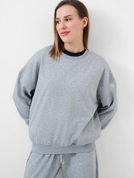 Женский серый свитшот оверсайз. Выполнен из хлопкового футера без начеса. Горловина, манжеты и низ изделия выполнены из эластичного риба, что обеспечивает комфортную посадку.