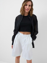 Удлиненные женские шорты из смесового льна с удобными боковыми карманами и резинкой по поясу
