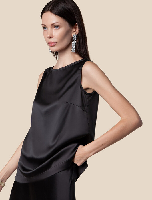 Топ выполнен из струящегося сатина напоминающий натуральный шелк. Модель с горловиной формы лодочка дополнена вытачками и двумя разрезами по бокам. Сочетайте изделие в костюме с юбкой D26.193 и брюками D24.221 чтобы создать роскошный праздничный образ. В комплекте с джинсами или любым другим низом из гардероба, для повседневного образа.