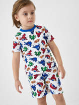 Пижама для мальчика из натурального хлопка. Футболка с короткими втачными рукавами и шорты с эластичной резинкой в поясе. Оригинальная набивка и принт выполнены из стойких текстильных гипоаллергенных красителей. Изделие сохраняет цвет и форму после многократных стирок. Все трикотажные полотна производятся в соответствии с нормами швейцарского сертификата ЭкоТекс.
