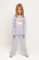 Трикотажная пижама из натурального хлопка. Джемпер с длинными втачными рукавами и прямые брюки с эластичной резинкой в поясе. Оригинальные набивка и принт выполнены из стойких гипоаллергенных текстильных гипоаллергенных красителей. Изделие сохраняет цвет и форму после многократных стирок. Все трикотажные полотна производятся в соответсвии с нормами швейцарского сертификата ЭкоТекс.