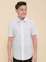 Школьная рубашка для мальчика из практичной ткани с современными деталями. Самые уязвимые для грязи детали выполнены из ткани контрастного цвета. Это разбавляет официальный стиль и позволяет не стирать белую рубашку каждый день.