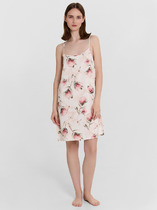 Сорочка женская из гладкокрашеного вискозного трикотажного полотна, свободного покроя, слегка расширенная к низу, с втачными рукавами - «крылышками», выполненными из кружева и втачанными в верхние части пройм. Расширенная иуглубленная горловина с кружевными отделочными деталями и сборкой по центру, окантована основным материалом.