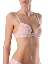 Бюстгальтер серии VOYAGE отличается чистотой линий и исключительным комфортом. Выполненный из полотна с деликатным жаккардовым рисунком «в горошек» и украшенный аппликациями макраме, бюстгальтер поможет создать одновременно простой и утонченный образ. Преимущества модели:- формованная чашка push-up, на каркасах;- вышитые аппликации макраме. - абсолютный комфорт на протяжении всего дня.