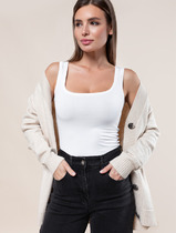 Бюстье женское из кулирного полотна. Перед со средним швом. Чашки подформованные на подкладке из кулирного полотна, со съемными чашками-вкладышами.