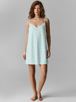 Сорочка мягко струится по фигуре и изящно подчёркивает декольте. Элегантный силуэт, лёгкое сияние материала и утончённый принт позволяют создать эффектный домашний образ.
