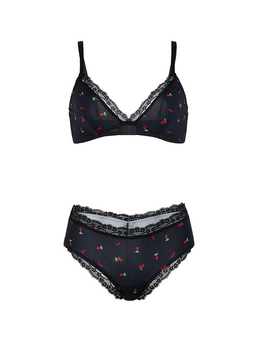 Бюстгалтер Soft bra  выполнен из мягкой ткани  с принтомн "Вишенка" . Мягкая чашка с кружевной оконтовкой без каркасов, с  боковыми корсетными вставками. Бретели регулируемые и не съемные. Застежка на два крючка и три ряда петель.
