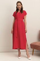 Платье с короткими рукавами из плотного набивного трикотажа интерлок . Модель с трапициевидной юбкой и боковыми карманами.