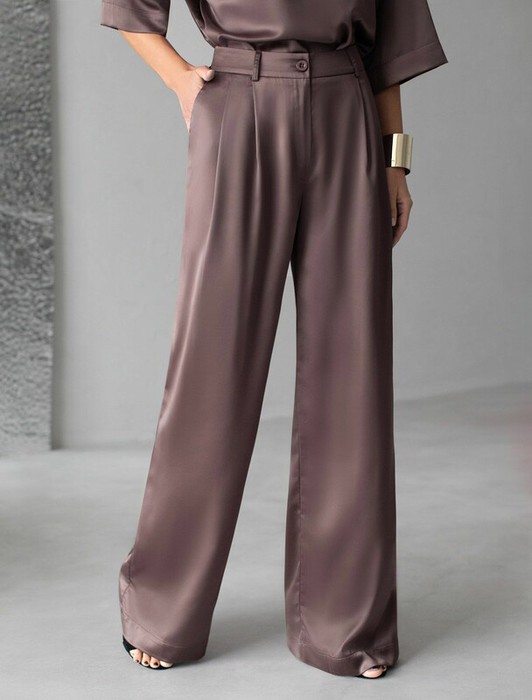 09.04 Vilatte Брюки палаццо широкие из струящегося сатина D24.304 кофейный