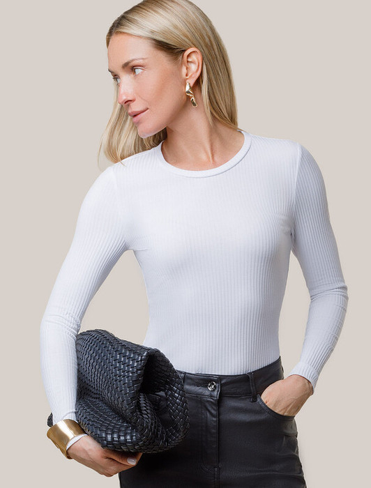21.04 Vilatte Джемпер из трикотажа в широкий рубчик D49.106 белый