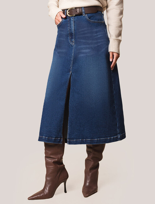 14.04 Vilatte Джинсовая юбка из плотной эластичной джинсы 13.8OZ. D56.122 синий