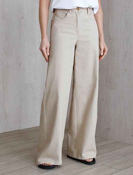 Джинсы трубы светло-голубого цвета выполнены из эластичного денима плотностью 13,7 OZ - классическая структура, которая отлично держит форму.и подчеркивает фигуру. После пошива изделие подвергли специальному виду вошинга — salt-stone washing (солт-стоун вошинг), что дословно значит стирка с каменной солью. Такой вид вошинга позволяет получить стильные потертости на голубых оттенках денима. Джинсы прямого кроя визуально вытягивают силуэт, благодаря эластану в составе аккуратно садятся на любую фигуру и обеспечивают максимальный комфорт в течение дня, не сковывая движения. Широкая размерная линейка подходит для разных типов фигур: свободные джинсы комфортны как для обладательниц пышных форм, так и для худеньких. Плотные джинсы идеально держат форму даже при активном движении и не вытягиваются после долгой носки. Качественная фурнитура и нашивка из эко-кожи с логотипом бренда делают эти джинсы премиальными. Широкий крой добавляет актуальности — такие джинсы отлично сочетаются как с обувью на каблуке, так и на пл