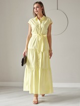Платье А-силуэта с поясом из легкого хлопка с добавлением эластана