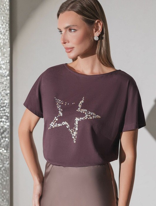 Совместные покупки Магнитогорск Женская одежда Футболки — 21.04 Vilatte Футболка D49.133 бургунди_stars