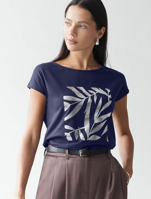 Совместные покупки Магнитогорск Женская одежда Футболки — 09.04 Vilatte Футболка D49.134 т.синий_листики