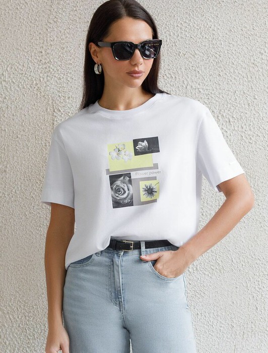 Совместные покупки Магнитогорск Женская одежда Футболки — 09.04 Vilatte Футболка D49.145 белый_flower_power