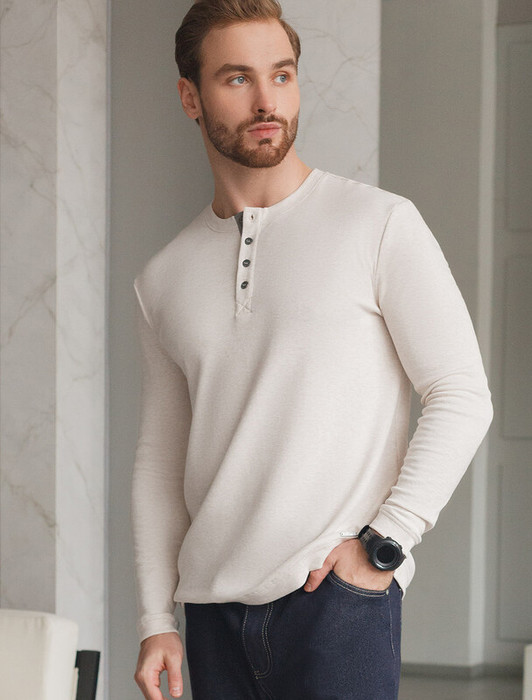 Совместные покупки Магнитогорск Мужская одежда Футболки — 09.04 Vilatte Лонгслив из премиального хлопка с эластаном U49.054 бежевый меланж