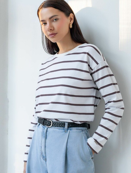 Совместные покупки Магнитогорск Женская одежда Футболки — 09.04 Vilatte Лонгслив с принтом из премиального хлопка с эластаном D49.148 бел